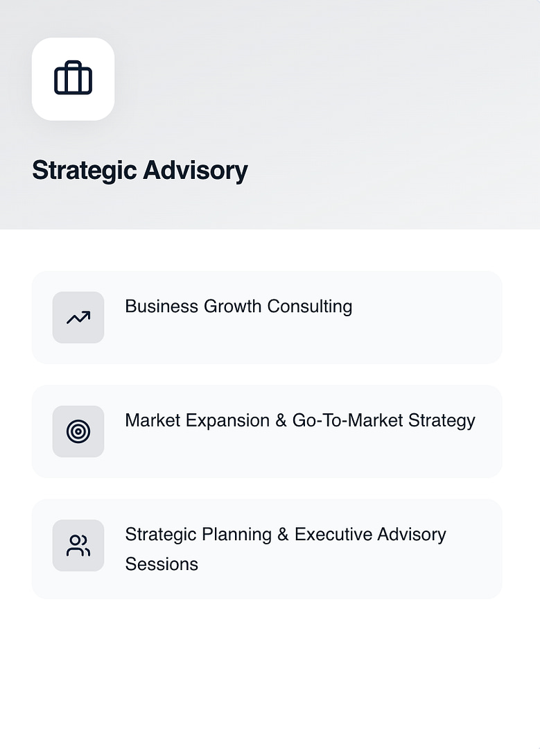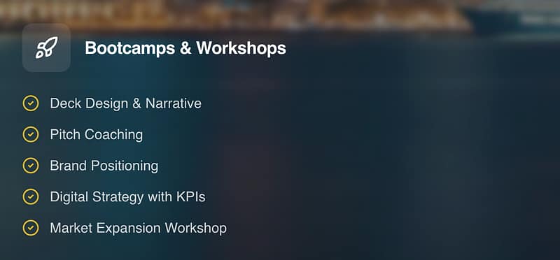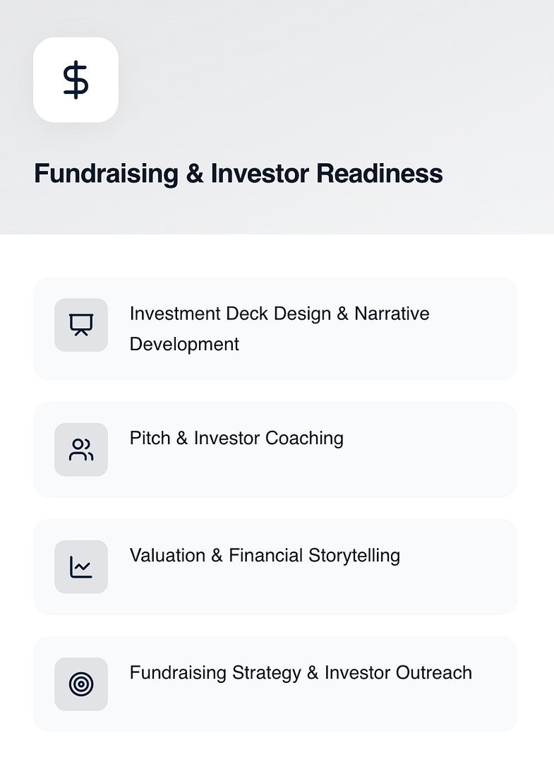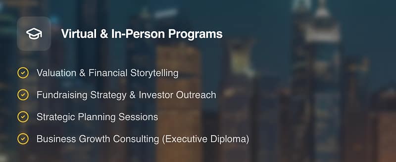 Comprehensive solutions designed to accelerate your growth, strengthen your brand, and prepare you for international investment.